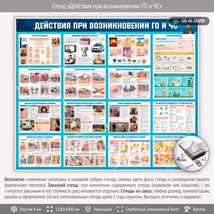 Стенд «Действия при возникновении ГО и ЧС» (GO-46-SILVER)