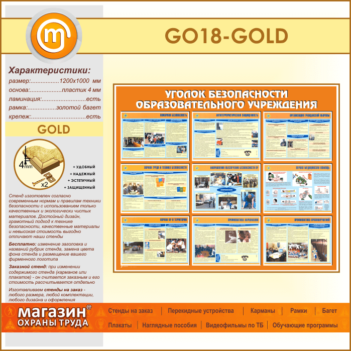 Стенд «Уголок безопасности образовательного учреждения» (GO-18-GOLD)