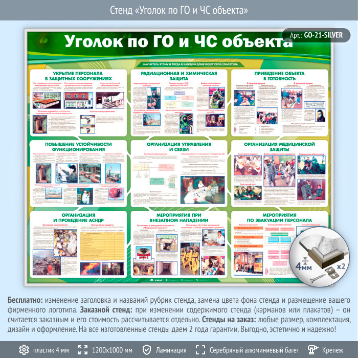 Стенд «Уголок по ГО и ЧС объекта» (GO-21-SILVER)