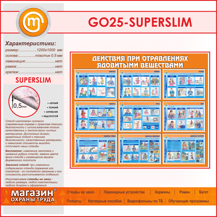 Стенд «Действия при отравлении ядовитыми веществами» (GO-25-SUPERSLIM)
