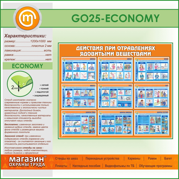 Стенд «Действия при отравлении ядовитыми веществами» (GO-25-ECONOMY)