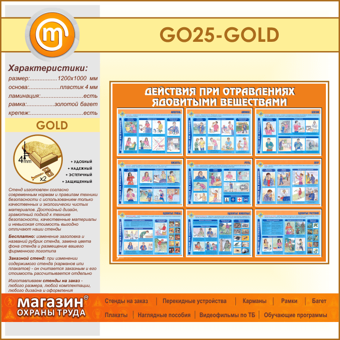 Стенд «Действия при отравлении ядовитыми веществами» (GO-25-GOLD)