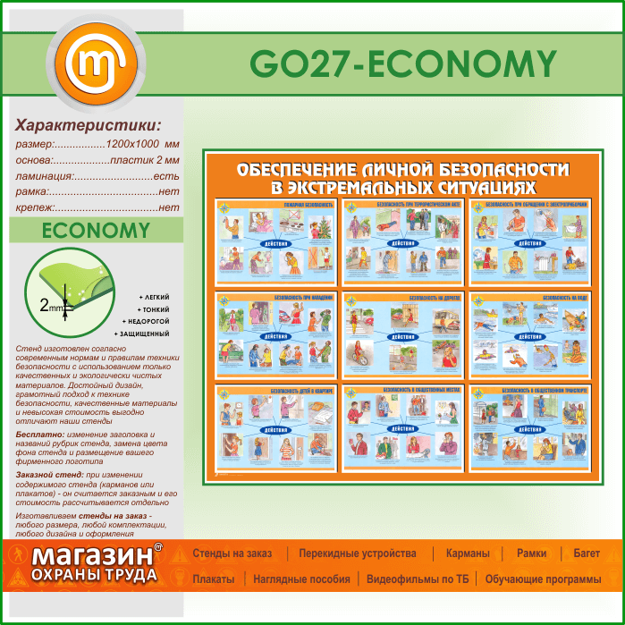 Стенд «Обеспечение личной безопасности в экстремальных ситуациях» (GO-27-ECONOMY)