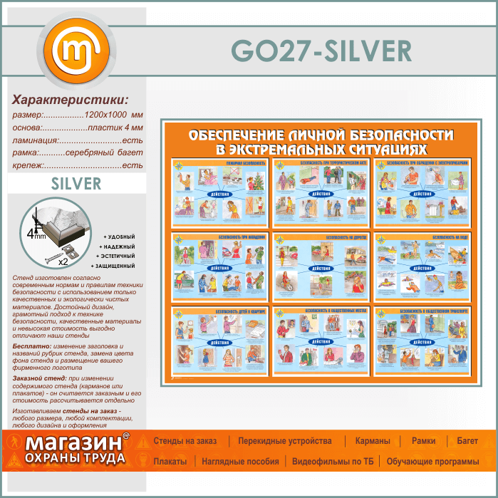 Стенд «Обеспечение личной безопасности в экстремальных ситуациях» (GO-27-SILVER)