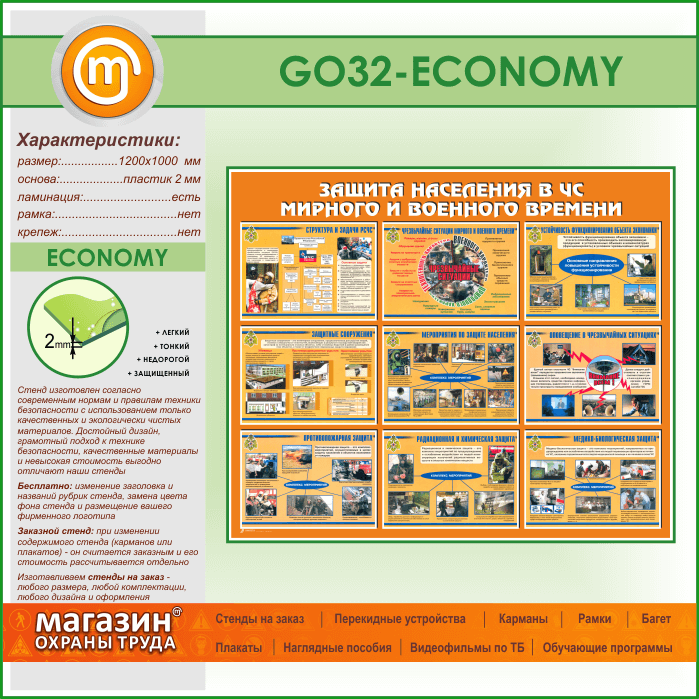 Стенд «Защита населения в ЧС мирного и военного времени» (GO-32-ECONOMY)