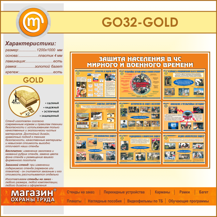 Стенд «Защита населения в ЧС мирного и военного времени» (GO-32-GOLD)