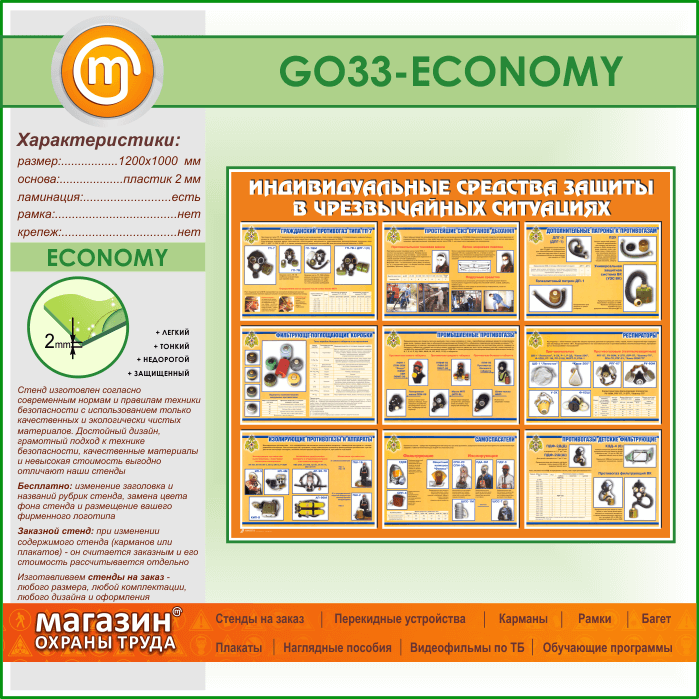 Стенд «Индивидуальные средства защиты в чрезвычайных ситуациях» (GO-33-ECONOMY)