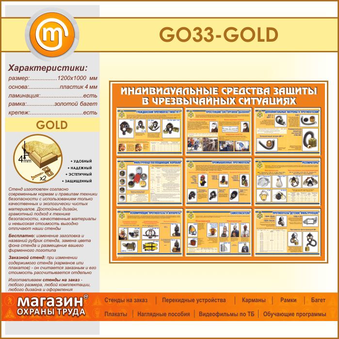 Стенд «Индивидуальные средства защиты в чрезвычайных ситуациях» (GO-33-GOLD)