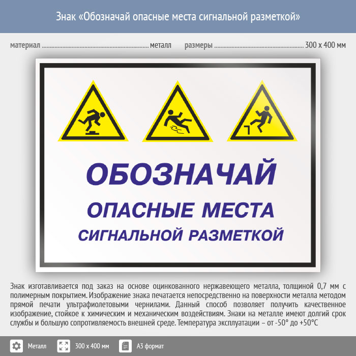 Знак «Обозначай опасные места сигнальной разметкой», КЗ-30 (металл, 400х300 мм)