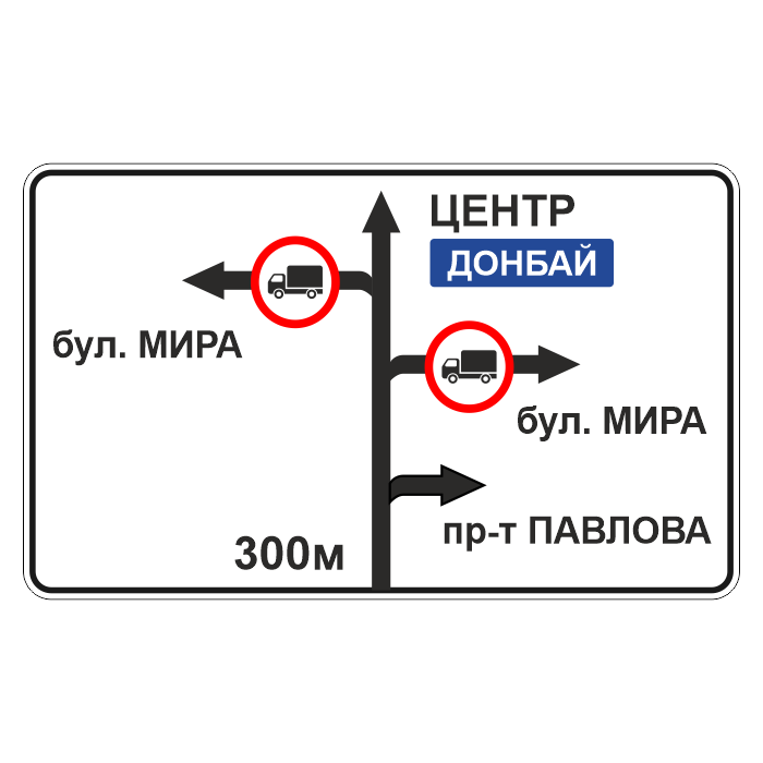 Дорожный знак 6.9.1 «Предварительный указатель направлений» (металл 0,8 мм, С/О пленка: тип Б высокоинтенсивная)