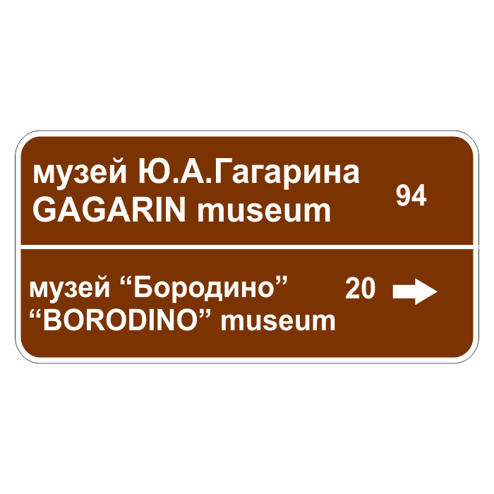 | • | Высота прописной буквы на знаках 6.14.1 и 6.14.2 — 150 мм, на знаке 6.16 — 200 мм вне населенных пунктов, 100 мм — в населенных пунктах |