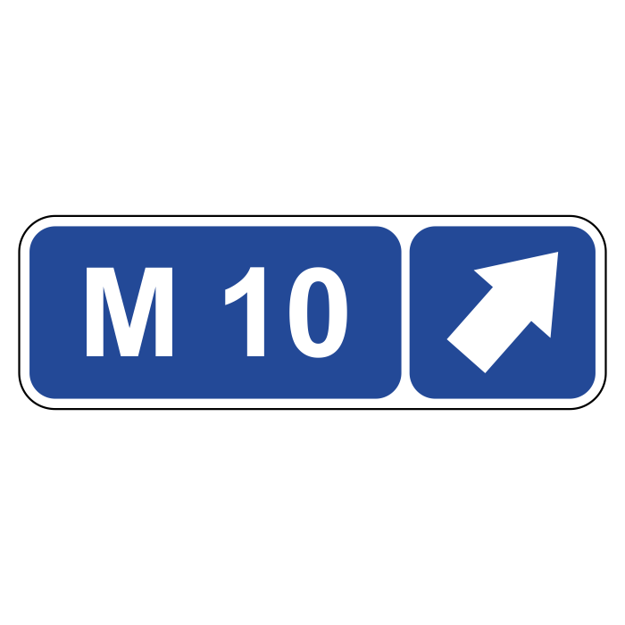 На знаке указывается номер и направление дороги (маршрута). Дорожный знак 6.14.2 устанавливают перед перекрестком для указания направления и номера дороги (маршрута), а также для указания номера дороги (маршрута) пересекаемой дороги, если перед перекрестком не установлены знаки 6.9.1, 6.9.2, 6.10.1, 6.10.2