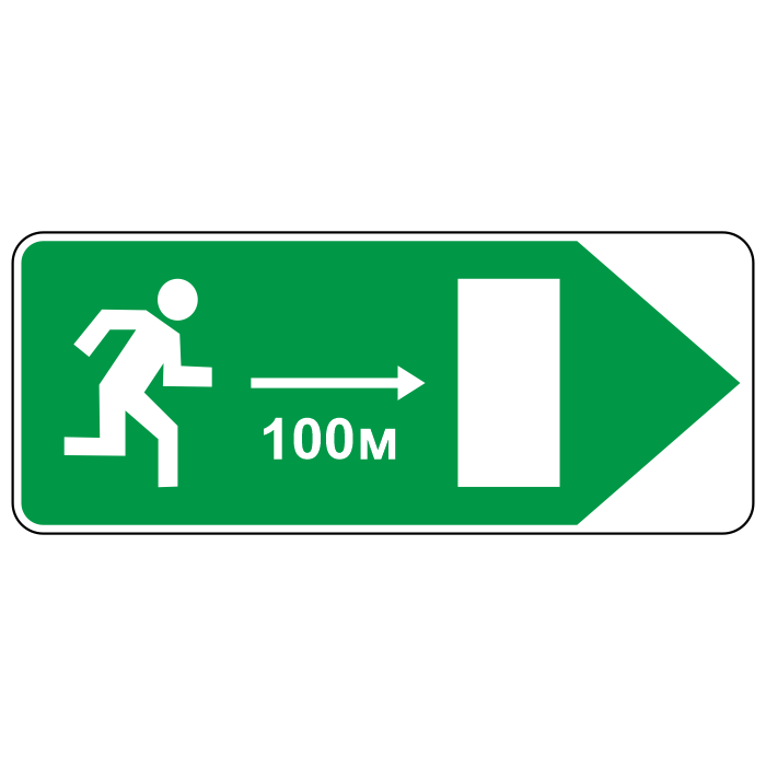 Дорожный знак 6.21.2 указывает направление к аварийному выходу и расстояние до него