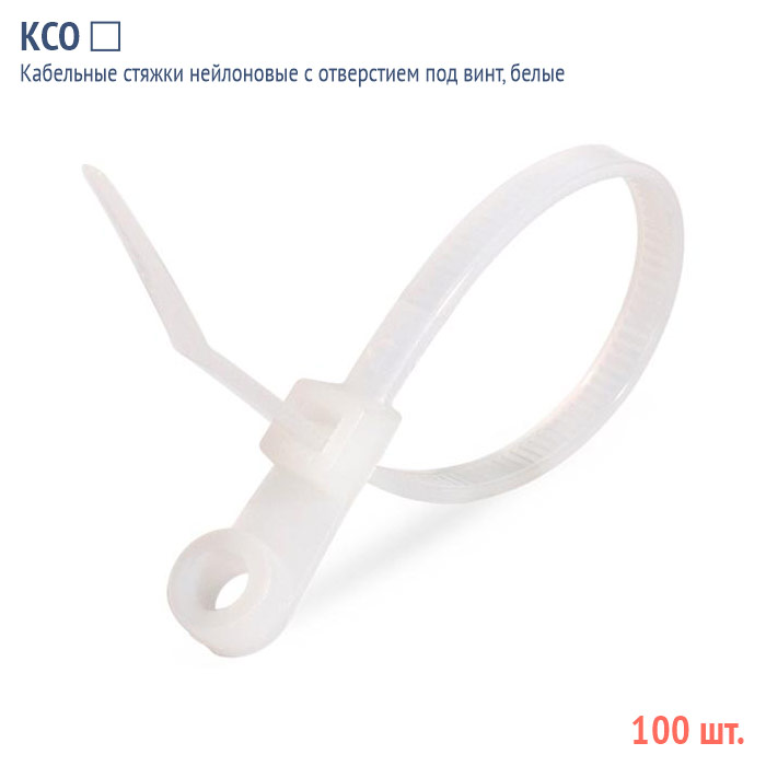 Кабельные стяжки нейлоновые с отверстием под винт, белые (100 шт.)