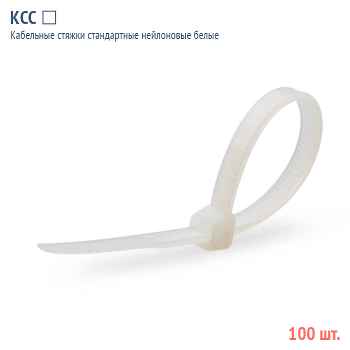Кабельные стяжки КСС – кабельные стяжки стандартные одностороннего хода из композиции нейлона 6.6 (PA 6.6). Данная продукция известна под многими названиями такими как «кабельные хомуты», «нейлоновые стяжки», «пластмассовые стяжки», «кабельные ремешки» и др. Нейлоновые стяжки отличаются малым весом, не поддерживают горение и не содержат галогенов. Кабельные стяжки КСС обладают высокой механической прочностью, эластичностью, термостойкостью, устойчивостью ко многим химическим реагентам и превосходными диэлектрическими свойствами