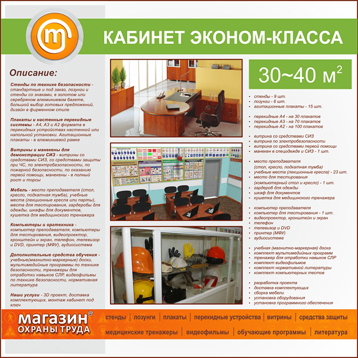 | Площадь кабинета: | 30-40 м2 |