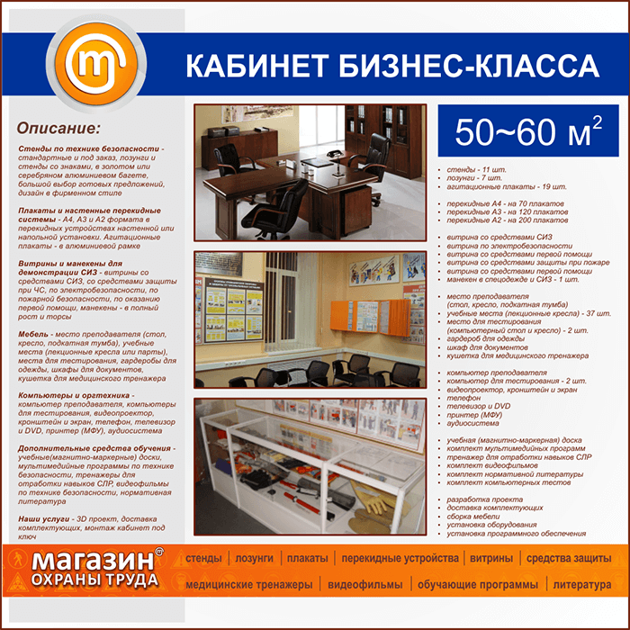 | Площадь кабинета: | 50-60 м2 |