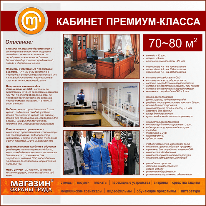 Предлагаем на выбор три класса кабинетов по охране труда на 70-80 кв.м. - эконом, бизнес и премиум