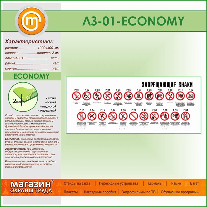 Стенд «Запрещающие знаки» (LZ-01-ECONOMY)
