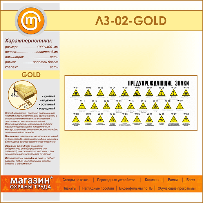 Стенд «Предупреждающие знаки» (LZ-02-GOLD)