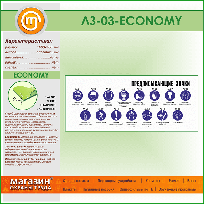 Стенд «Предписывающие знаки» (LZ-03-ECONOMY)