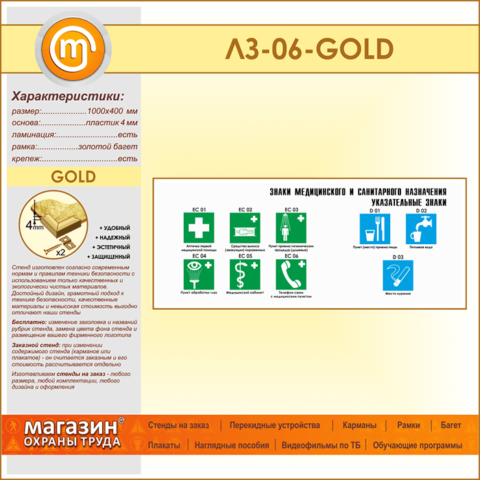 Стенд «Знаки медицинского и санитарного назначения. Указательные знаки» (LZ-06-GOLD)