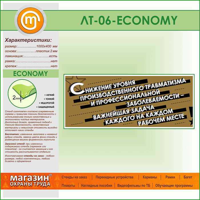 Стенды с лозунгами по охране труда и технике безопасности используются на производственных участках, при оформлении учебных классов и кабинетов охраны труда, а так же служат ярким и красочным напоминанием о технике безопасности