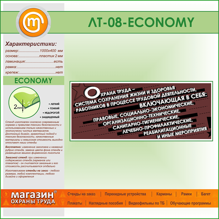 Лозунг «Охрана труда - система сохранения жизни и здоровья...» (LT-08-ECONOMY)