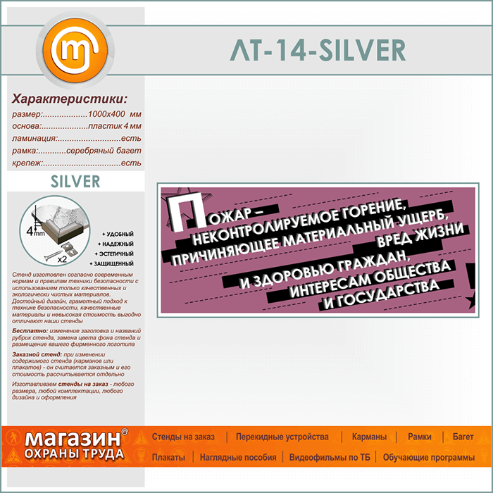 Подводя итог вышесказанному, к главным преимуществам данного стенда, изготовленного на пластике 4 мм в серебряном алюминиевом багете можно отнести шикарный внешний вид, использование качественных и экологически безопасных материалов, высокие эксплуатационные свойства, качественный дизайн, а также соответствие современным нормам и правилам техники безопасности