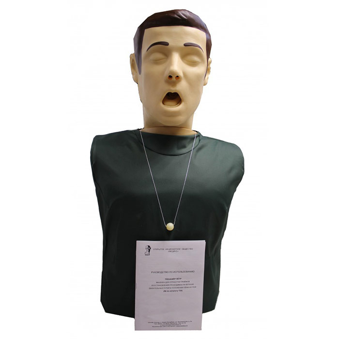 Данный тренажер представляет собой манекен, полностью имитирующий торс человека с головой (без конечностей). Манекен предназначен для обучения и отработки приемов восстановления проходимости верхнихдыхательных путей в положении лежа и стоя, активно используется при обучении новых водителей в автошколах согласно приказа 636 от 18.06.2010г