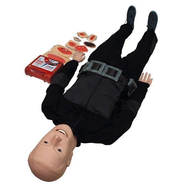 - накладные травмы и ранения различной степени тяжести толщиной не менее 7 мм с возможностью замены и установки на любую часть тела тренажера-манекена для отработки первичных навыков оказания первой помощи.