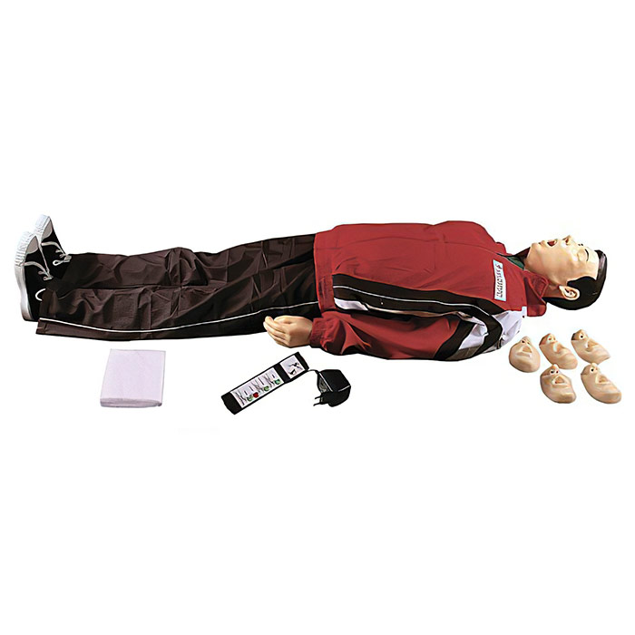 Представляет собой полную модель человека и предназначен для отработки навыков оказания первой помощи. Этот тренажер позволяет контролировать пульс на сонной артерии и положение головы пострадавшего, оснащен встроенными датчиками для определения объема воздушного потока, глубины смещения грудной клетки и контроля пульса