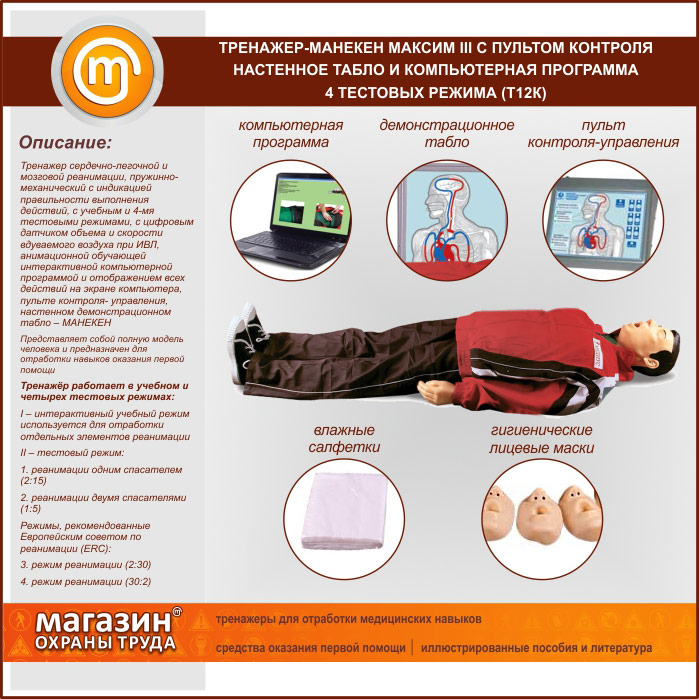 Тренажер-манекен «Максим» III с пультом контроля, настенным табло и компьютерной программой, 4 тестовых режима (Т12К) | Тренажер-манекен «Максим» III с пультом контроля, настенным табло и компьютерной программой, 4 тестовых режима (Т12К) |