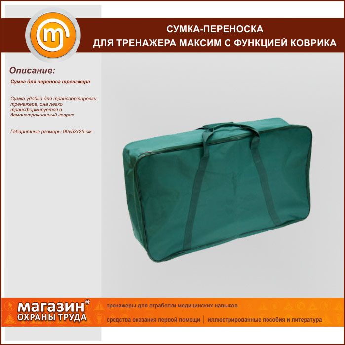 Сумка удобна для транспортировки тренажера, она легко трансформируется в демонстрационный коврик. Габаритные размеры 90х53х25 см