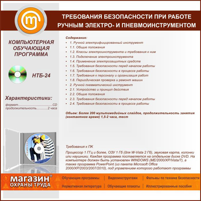 «Требования безопасности при работе ручным электро- и пневмоинструментом», обучающая программа