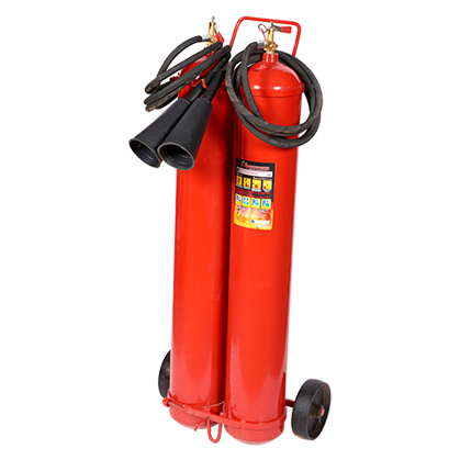 Передвижной углекислотный огнетушитель ОУ-25 с 2 баллонами, объемом 16,75 л каждый. Поставляется собранный, имеет резиновые колеса. Предназначен для защиты объектов производственного и хозяйственного назначения, электроустановок под напряжением до 10 кВ. Вместимость корпуса составляет 2х16,75 л, масса заряда – 25 кг. Данный огнетушитель рассчитан на тушение объекта возгорания в течение 15 сек. при длине струи 4 м. Ранг по модельным очагам: 89В, С, Е (до 10000В)