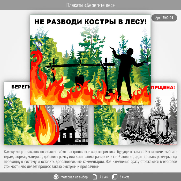 Плакаты «Берегите лес» (ЭКО-01, 3 листа)