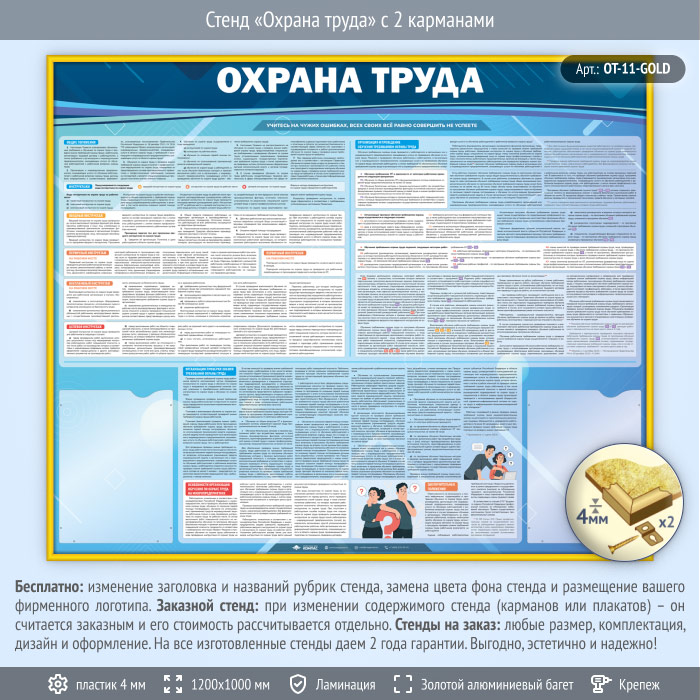 Стенд «Охрана труда» с 2 карманами (OT-11-GOLD)
