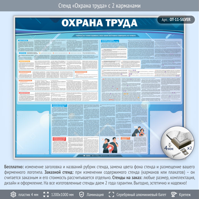 Стенд «Охрана труда» с 2 карманами (OT-11-SILVER)
