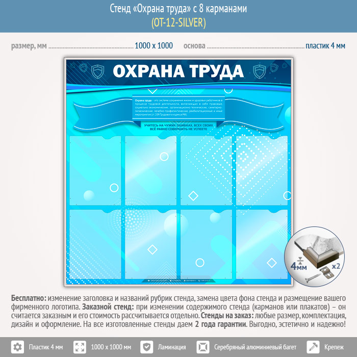 Стенд «Охрана труда» с 8 карманами (OT-12-SILVER)
