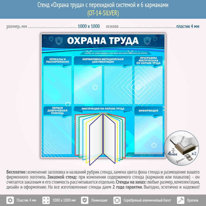 Стенд «Охрана труда» с перекидной системой и 6 карманами (OT-14-SILVER)