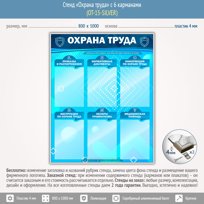 Стенд «Охрана труда» с 6 карманами (OT-15-SILVER)