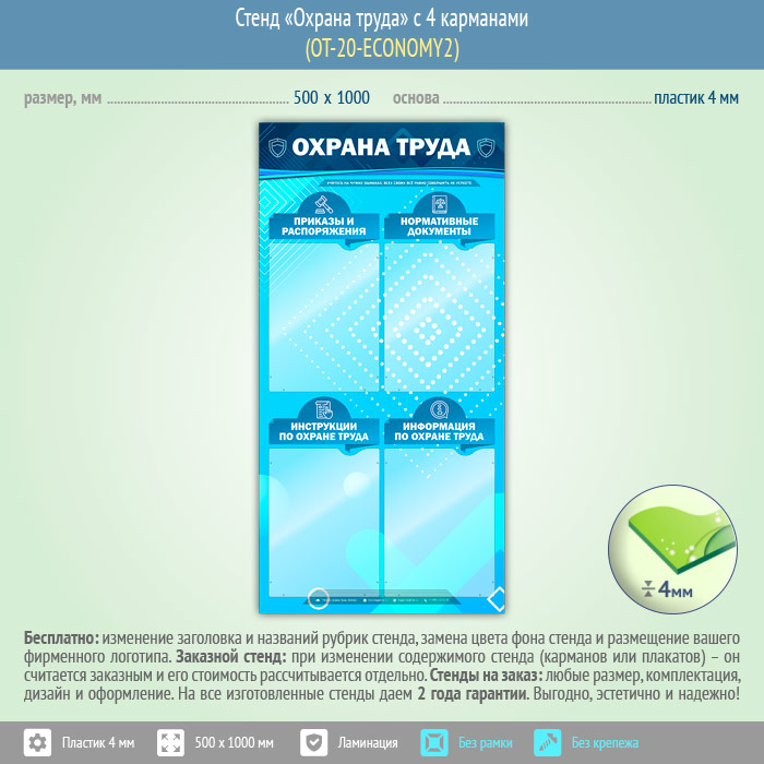 Стенд «Охрана труда» с 4 карманами (OT-20-ECONOMY2)