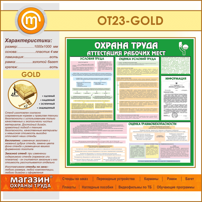 Стенд «Охрана труда. Аттестация рабочих мест» с карманом (OT-23-GOLD)