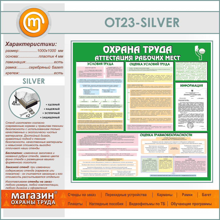 Стенд «Охрана труда. Аттестация рабочих мест» с карманом (OT-23-SILVER)