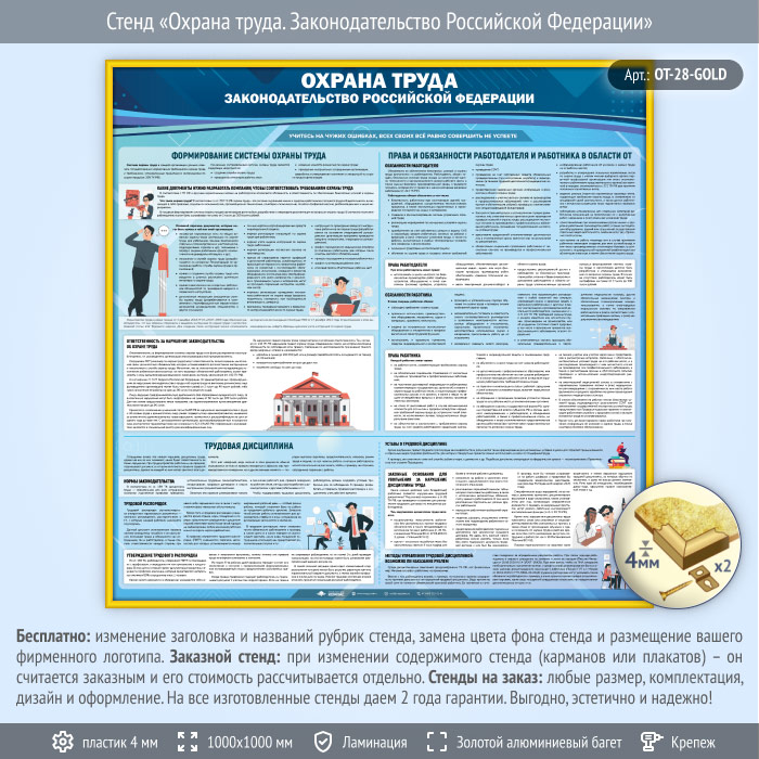 Стенд «Охрана труда. Законодательство Российской Федерации» (OT-28-GOLD)
