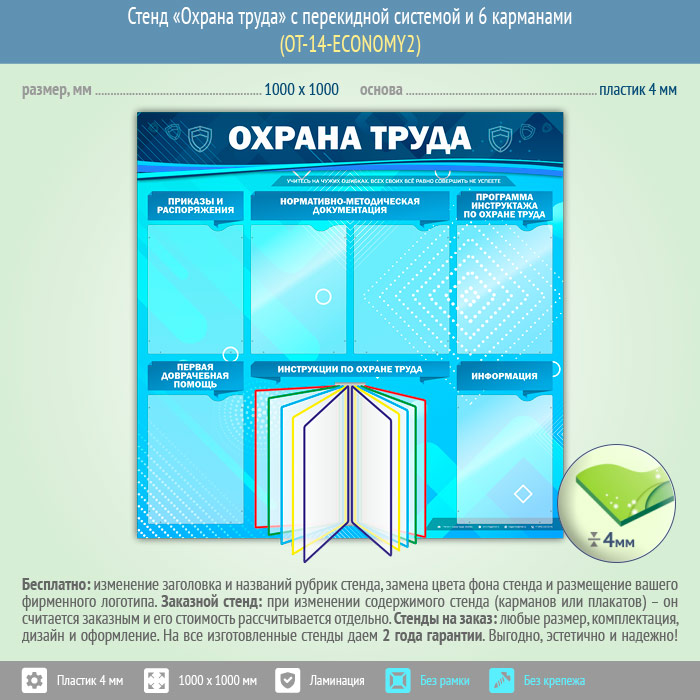 Стенд «Охрана труда» с перекидной системой и 6 карманами (OT-14-ECONOMY2)