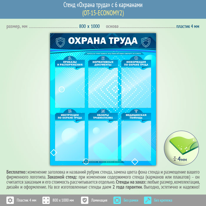 Стенд «Охрана труда» с 6 карманами (OT-15-ECONOMY2)