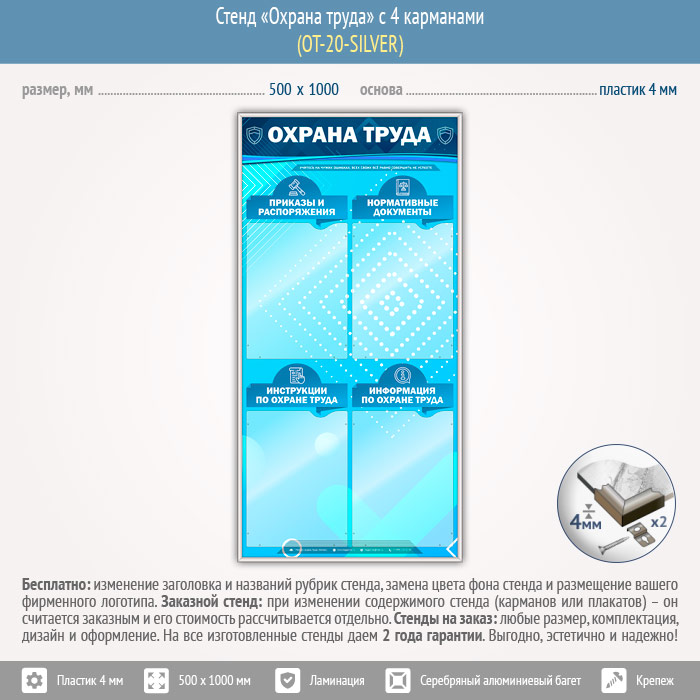 Стенд «Охрана труда» с 4 карманами (OT-20-SILVER)