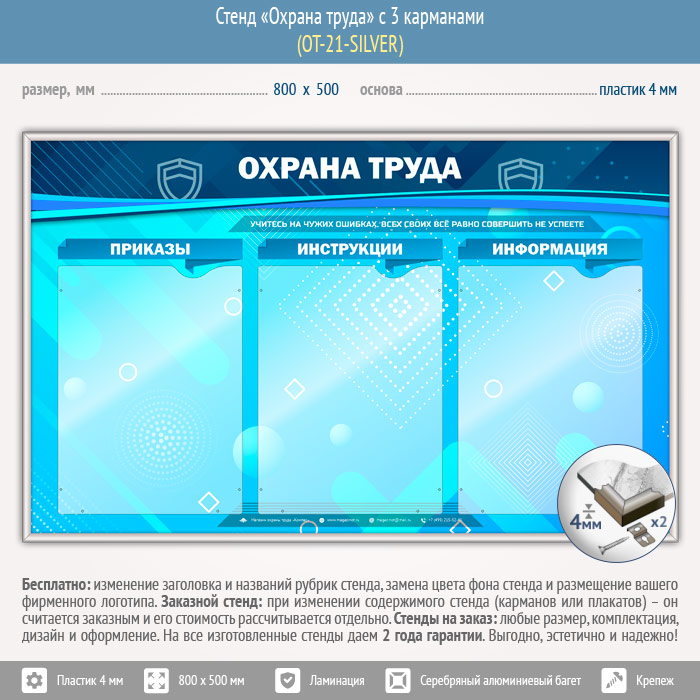 Стенд «Охрана труда» с 3 карманами (OT-21-SILVER)